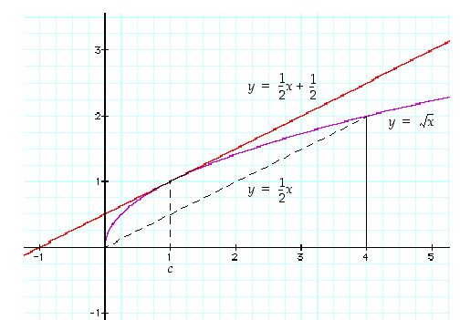 Differentiaalilaskennan väliarvolauseen oletukset ovat siten voimassa. Sen mukaisesti on olemassa piste