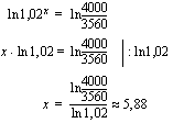 Vuoden 2002 alussa talletetaan 3560 euroa tilille, jonka veroton korkokanta on 2 %/vuosi. Tilillä korko liitetään pääomaan aina vuoden lopussa. Milloin tilin saldo ylittää ensimmäisen kerran 4000 euroa, kun oletetaan, että tililtä ei nosteta eikä sinne lisätä varoja tänä aikana?